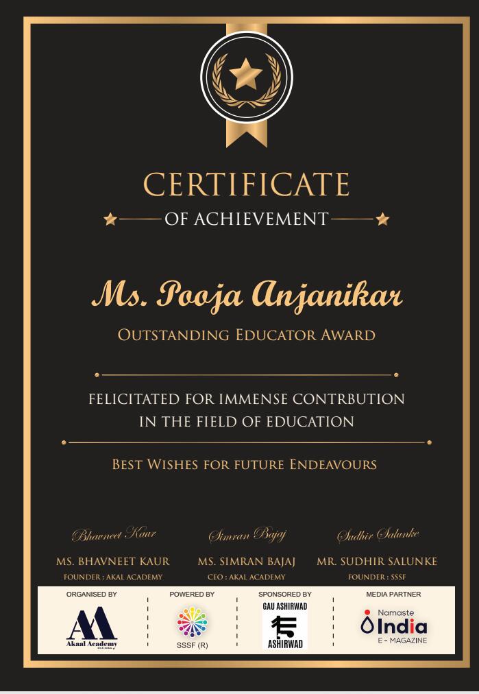 Maven of Education was founded in the year 2016 by Ms. Pooja Anjanikar. She is Founder of Maven of Education, Mumbai and Director Public Relation for “International United Educationists ’Fratenity” (IUEF). She is the Educational Principal & Advisor, Counselor in numerous academic and professional bodies. She holds a vast Experience into education and welfare for underprivileged. She is also a member of Sector Skill Council and National Skill Development Corporation (NSDC), a licensed Trainer and a dedicated mentor. She even shares her expertise with many corporate companies as R&D head.